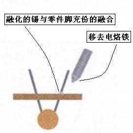 3上焊錫適量:根據焊點大小蘸取的焊錫量足夠包住被焊物.形成光亮圓滑的焊點一次上焊錫不夠可再補上.但須待前次焊錫被一同容化之後移開烙鐵頭.有的人焊接時象燕子壘窩一樣往上堆焊錫.結果焊了不少焊錫就是不牢.
